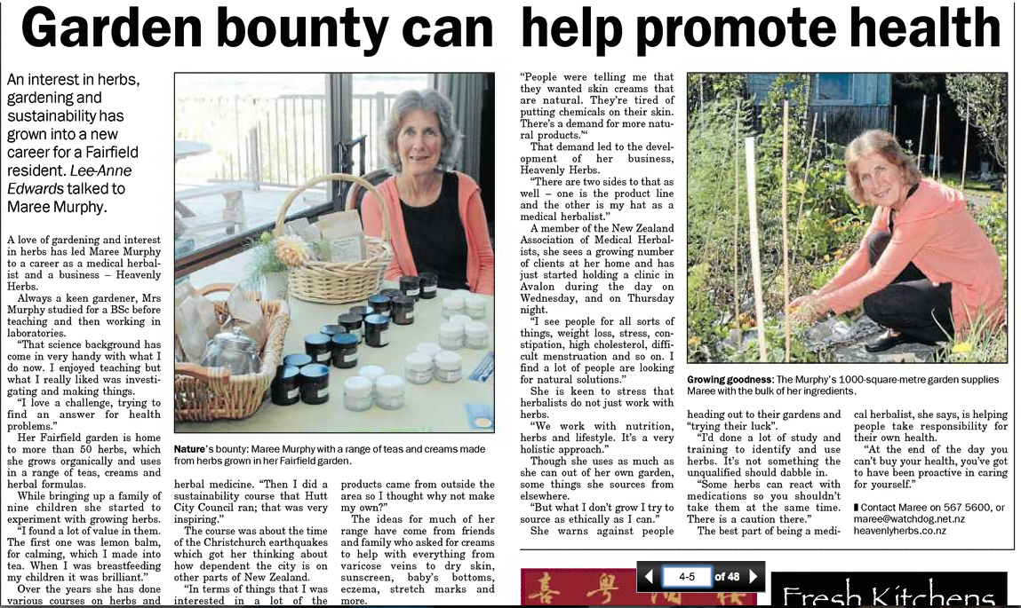 Lower Hutt, 2016 High blood pressureMaree has been helping us with our health for 3 months. When we first contacted her I was very stressed and my blood pressure was 140/80. We have made changes in our nutrition and started exercising. Maree has also given us herbs for stress which have helped so much. Last week I went to the doctor and my blood pressure is now 125/80 and I am feeling soooo much better!!!